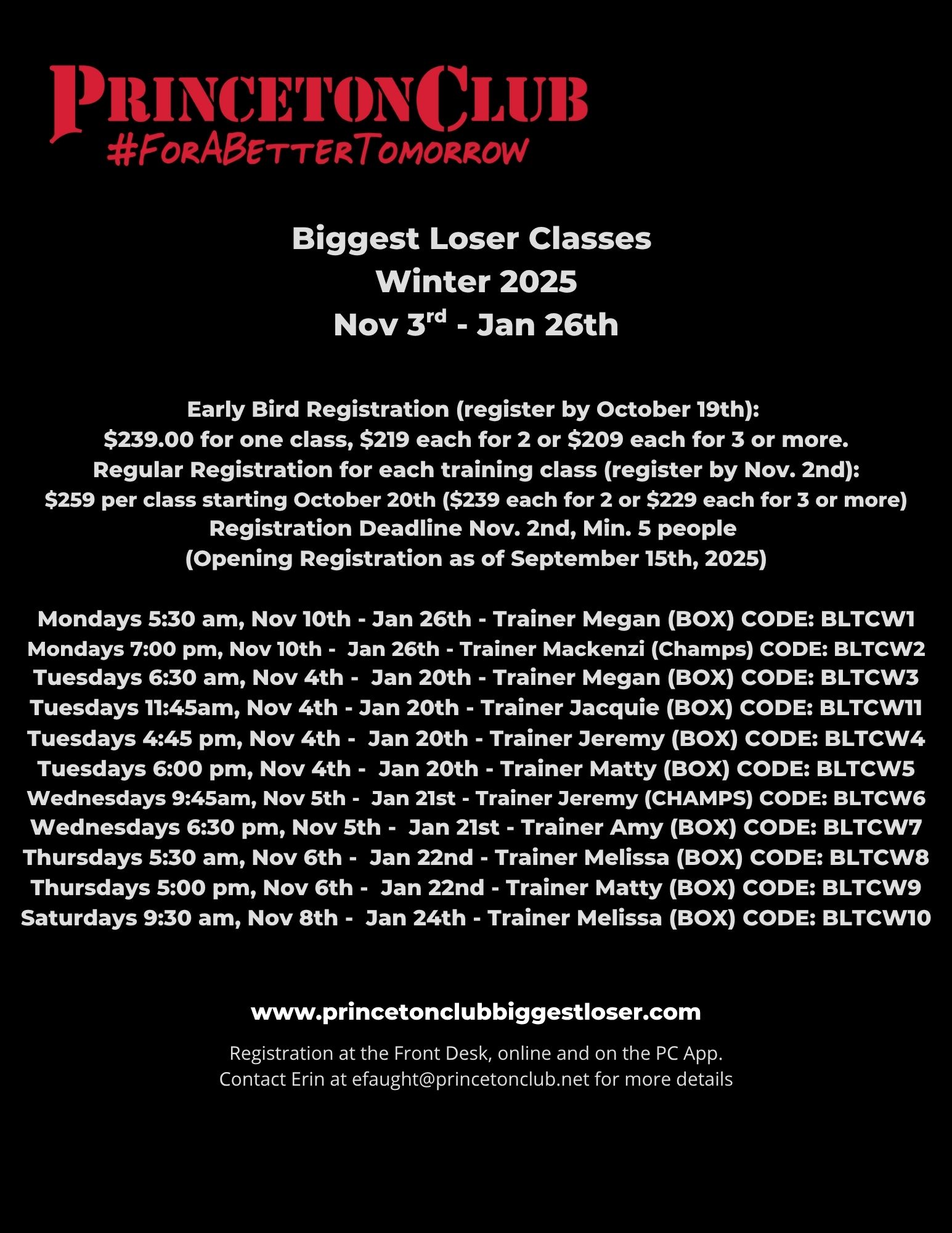 *TRX4E fee is $144, (8-week session, No class Jan 1st).