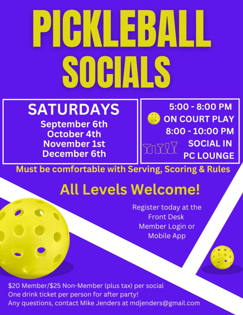 Pickleball Paddles and Balls are located at the Front Desk and can be checked out. Must be returned when done.